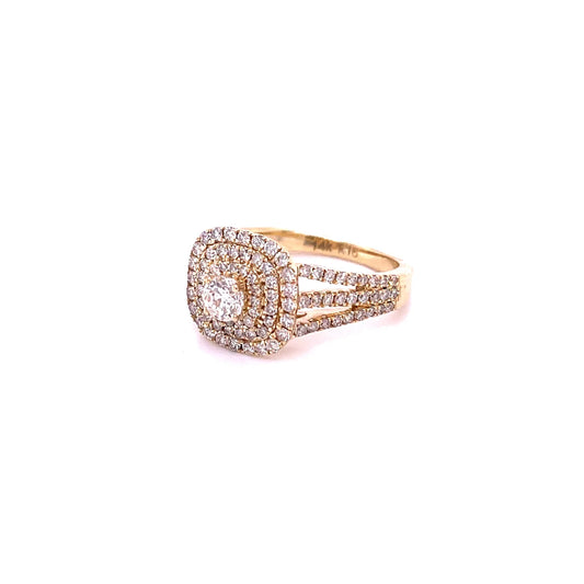 1.16ct Diamond Multi-Row Cushion Frame Triple Shank in 14kt Yellow Gold