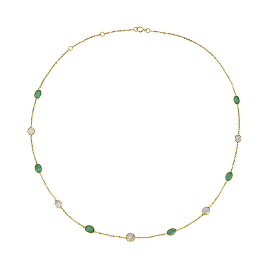 14k Emerald and Diamond Slice Station Necklace