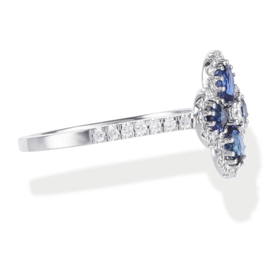 Diamond / Blue Sapphire Clover Ring 14kt Gold