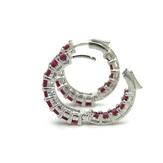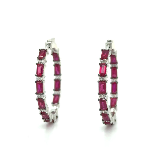 18k White Gold Ruby and Diamond Hoop Earring