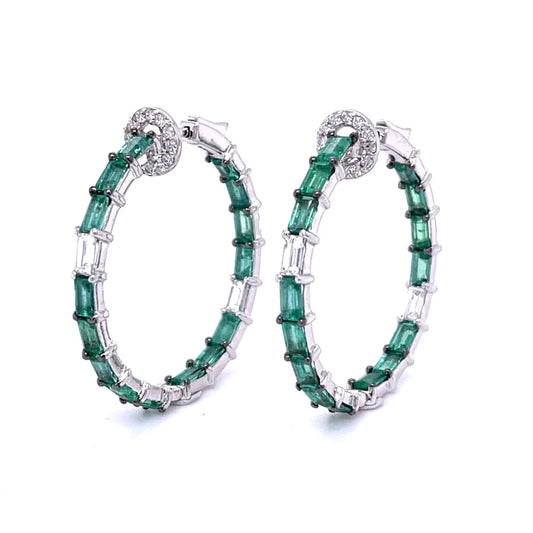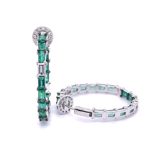 18kt White Gold Emerald With Diamonds Earing