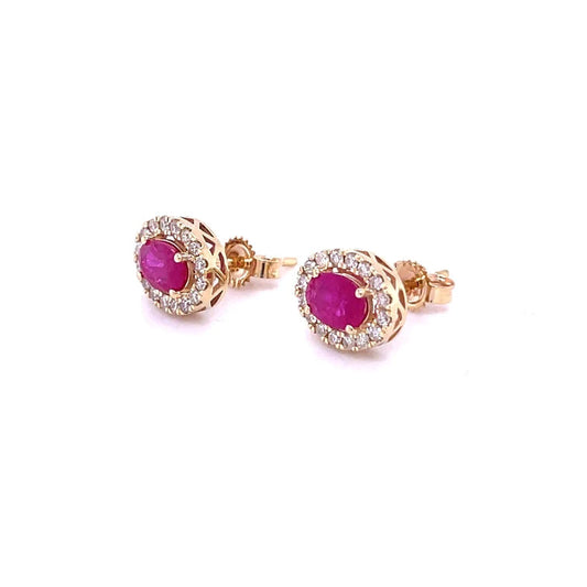 14kt Yellow Gold Ruby With Diamonds Earring