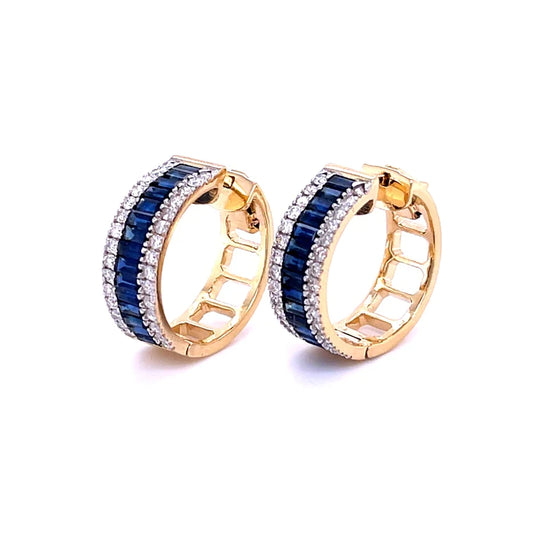 14kt Yellow Gold Blue Sapphire With Diamonds Earing