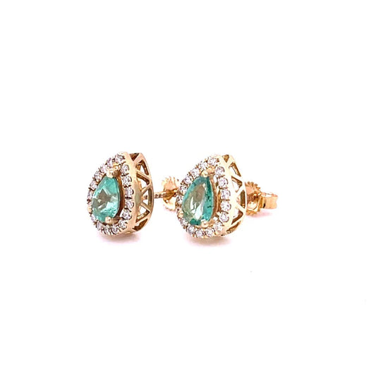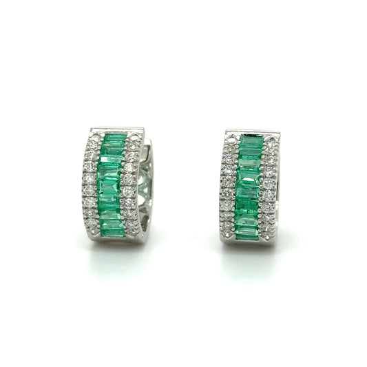 14k Yellow Gold Emerald and Diamonds Hoop Earing